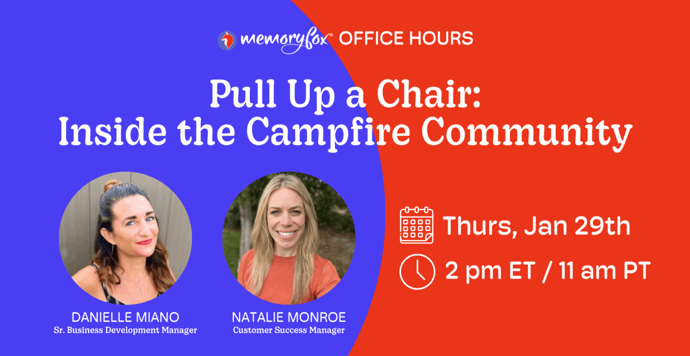 Join us for a 60-minute live Community Demo + Office Hours where we pull back the curtain on what it’s like to be part of the MemoryFox Campfire Community.